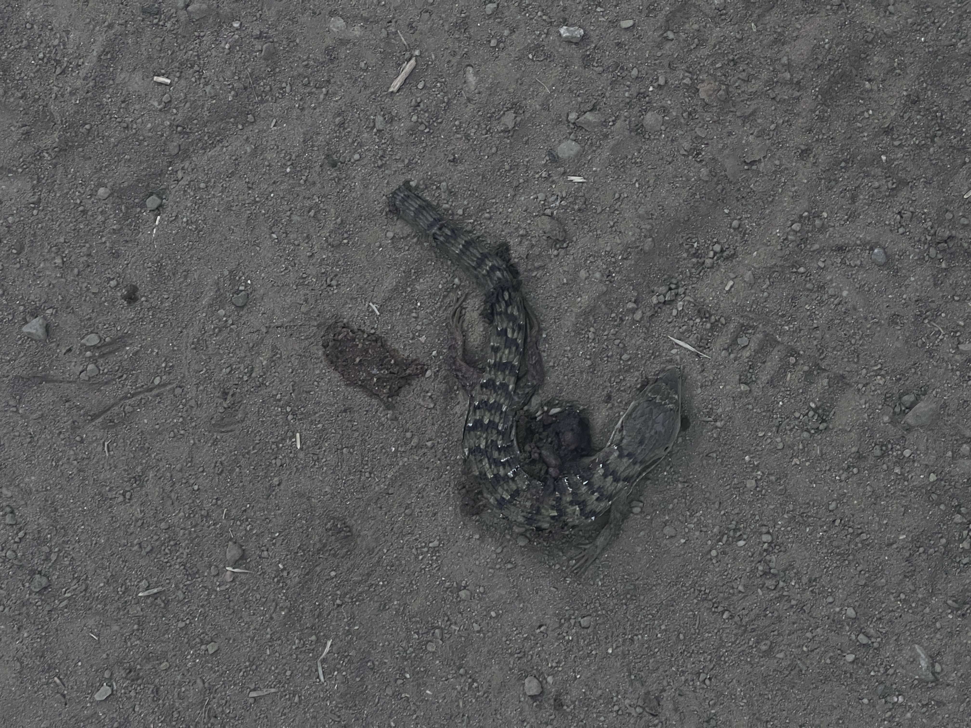 A slayed snakes head. In what appears to be chopped off, the rest of its body was not in sight. Who killed the snake? I don’t know it was just this. Now, I’m no snake expert so do let me know if there is heightened significance in knowing what type of serpent this is. To my knowledge we’ll consider it a garden snake. Nevertheless, what the fuck?!