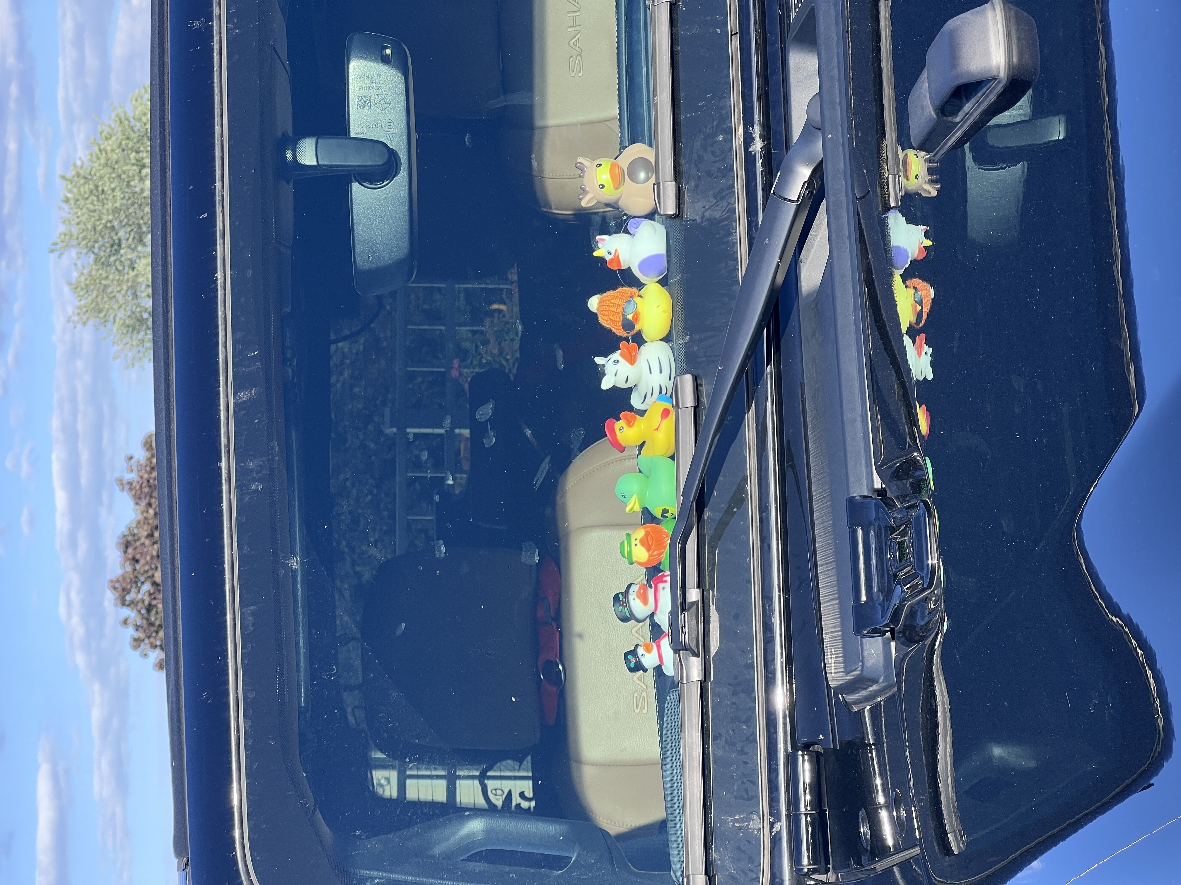 He printed a paper, I signed my name and walked out the door. As I was walking back to my car, I gazed up at the other cars, checking my 360 surroundings like a curious woman always does. That’s when I saw them. Just sitting there like ducks in a row... on the windshield of the jeep in the next lane over. One by one with their vibrant yellow bodies and orange beaks. Yes, I’m talking about the kind kids use in the bathtub - those little rubber duckies! Just sitting in the window pane! Looking out at me!
